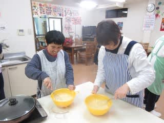 皮むきをする人、生地を作る人に分かれ分担して作業を行います。