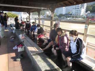 浜の町ではグループ毎に分かれて行動し、昼食もそれぞれに食べたい物を選び
