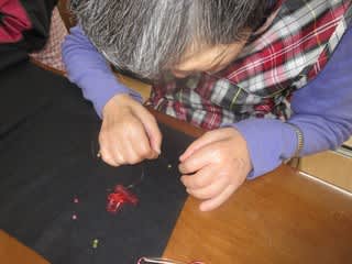 とっても細かい作業で、はじめは中々糸が通らず苦戦していましたが
