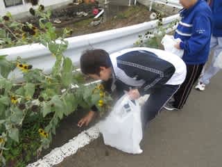 みんな真剣なまなざしで一つ一つ丁寧にゴミを拾って行きます。