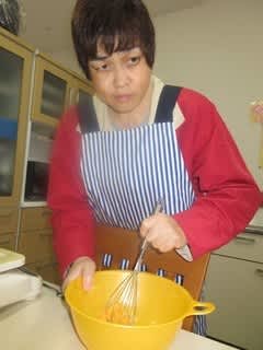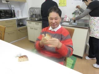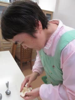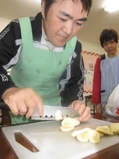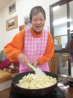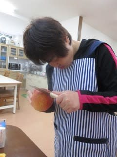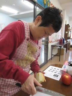 本日のメニューは、利用者のリクエストに応え「リンゴパン」を作ります