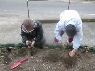 今日は、花壇や施設の周りに生えている草取りを行った後、花の苗を植えました