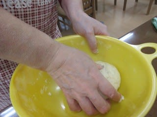 初めて作る手ごねのパンです、愛情込めて力一杯捏ねて行きます。
