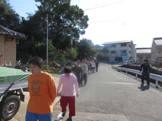 歩行訓練も兼ねて一列に並んで出発です