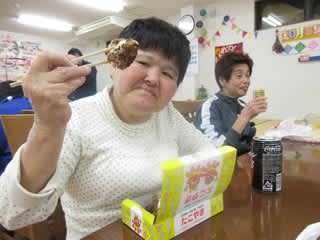お祭りで購入した「たこ焼き」や「梅が枝餅」が本日のおやつです