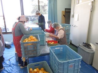 施設内にみかんの香りが漂う中みんな頑張って作業していますよ~