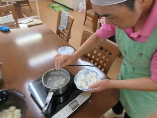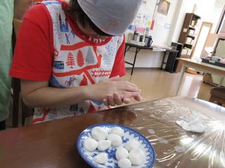 おやつ作りもこんかいで3回目、こねたり茹でたり、切ったり段々手際よくなってきましたよ~