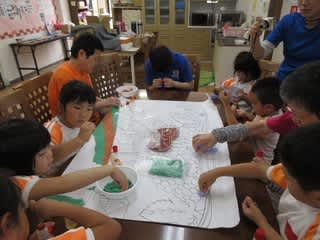 午後は利用者と一緒に貼り絵を楽しみました。