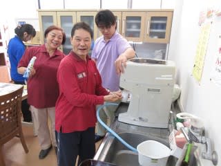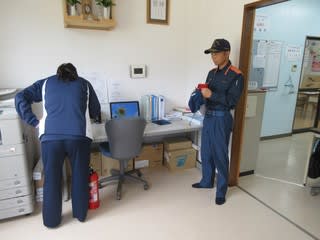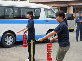作業所の訓練後に隣接するグループホームでの訓練も行われ、最後に消火器の使用方法についてもご指導頂きました。