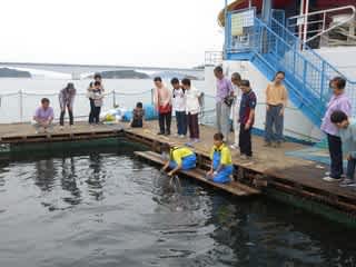 昼食後は松島にある「海中ワクワ水族館」へ。間近でイルカの様子を見せてもらう事も出来ました。