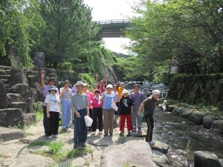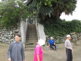 8月の活動日、小浜町にある鬼石を見学。鬼石は普賢岳噴火の際に飛んできた一枚岩です。