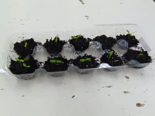 先日春の花壇作りに向けて、卵のパックを再利用してマリーゴールドの種を