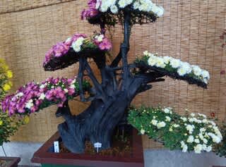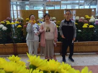 菊の花や絵画などたくさんの展示品を見て
