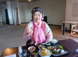 お刺身や天ぷらなどボリュームがある定食を食べ