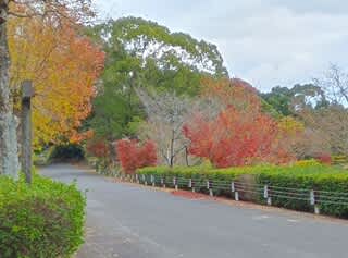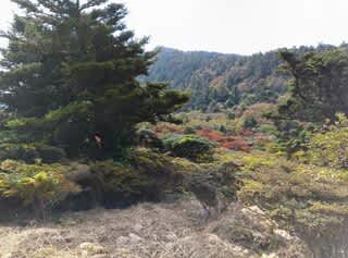 もみじなどが赤く色づいており、