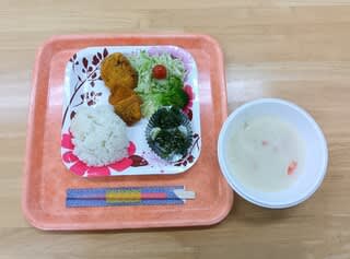 今日の昼食のメニューは職員特性のシチューとヒレカツでした