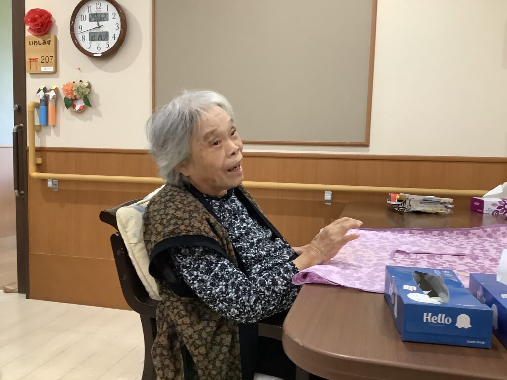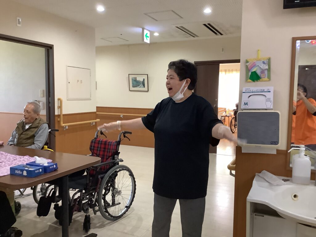 職員さんの口の動きに合わせて入居者さんも『あ~、い~、う~、べ~』と楽しく口腔体操をされています。