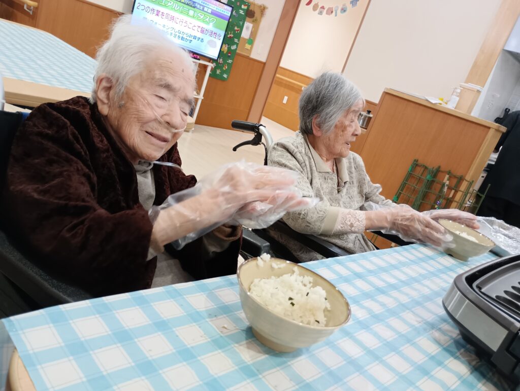 今日は たこ焼きと わかめおにぎりを皆さんと作りました!