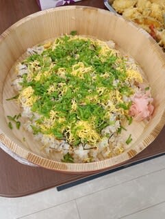 今日は七夕の日ということで、昼食のメニューはちらし寿司、