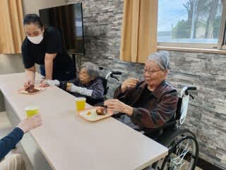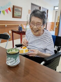 全員でハッピーバースデーを歌い、ケーキを美味しく召しあがっていらっしゃいました。「甘くておいしか~」と好評でした。