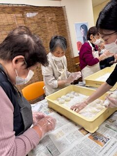 皆さんお話をしながら丁寧に丸めておられます。