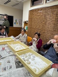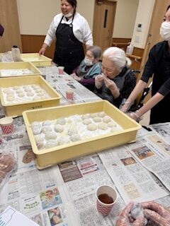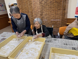 12月22日は餅つき行事であり、皆さんでお餅を丸めました。