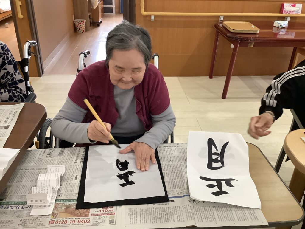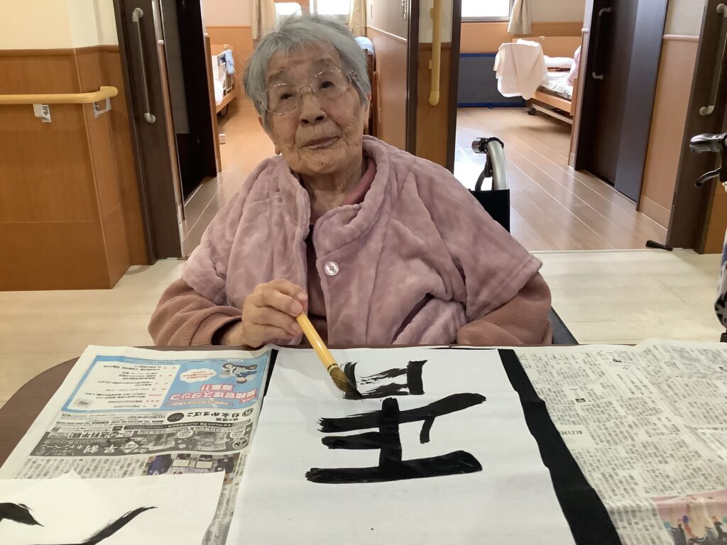 1月5日に全員で書き初めをしました。昔の正月話をしながら楽しく書き初めができました。