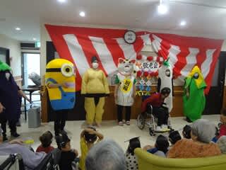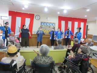 理事長の挨拶から始まり、保育園児の歌や踊り、利用者と職員の出し物で