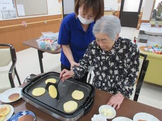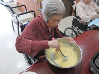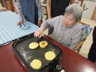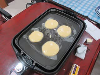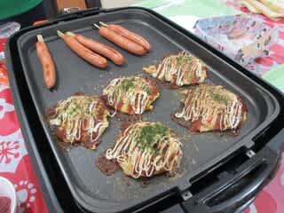 材料を混ぜてホットプレートで焼きます。皆さん、久しぶりの
