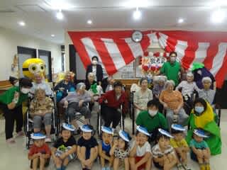 引き続き、2階のユニットの入居者さんと八幡保育園児