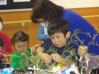 そこで今日は、八幡保育園の園児の皆さんと一緒に七夕飾りをしました