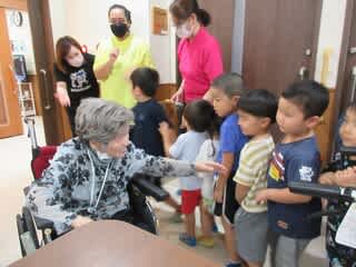 子ども達との交流が一番喜ばれます。八幡保育園の園児の皆さん、
