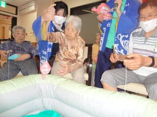午後から1Fでは、どじょうすくい、魚釣りゲームを
