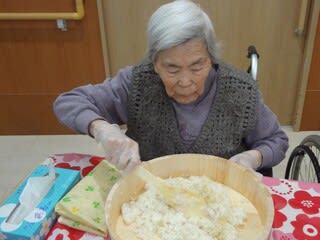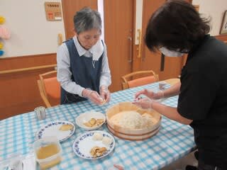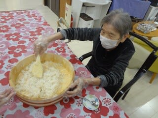 まずは、酢飯作りから始めて、入居者さんに混ぜてもらいました。