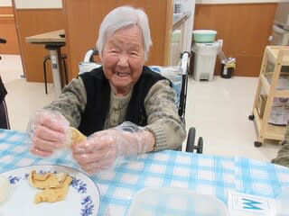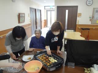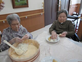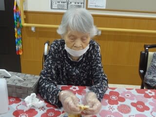 手作り昼食にて、入居者様と一緒にいなり寿司を作りました