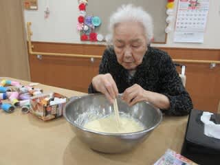 本日の手作りおやつは「ベビーカステラ」を作りました。