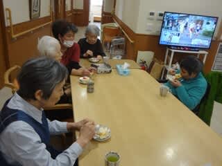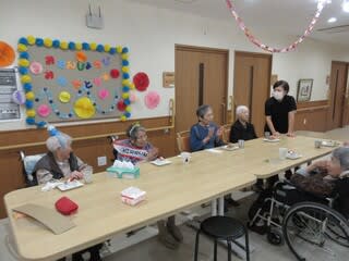 皆さんで歌をうたったり、ケーキを食べて一緒にお祝いし、誕生日者の方も喜ばれてました