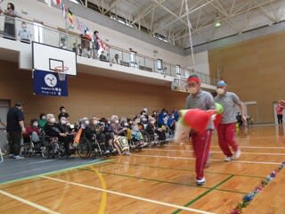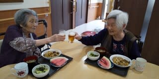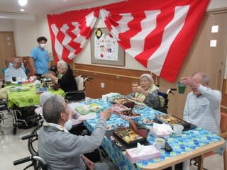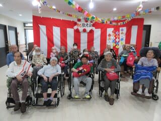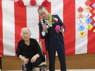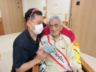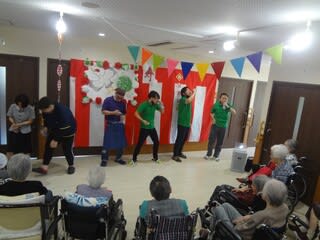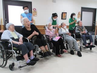 職員によるラムネの早飲み競走、南串よかとこ音頭を一緒に踊ったり、大抽選会職員による歌唱を行い、入居者様も大笑いされており、大変盛り上がった1日となりました