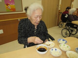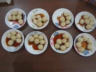 本日の手作りおやつは「みたらし団子」を作りました。