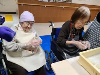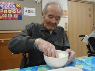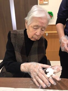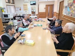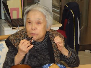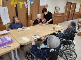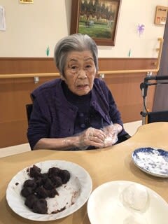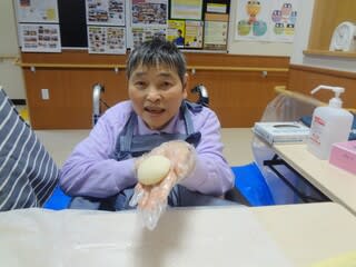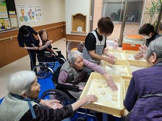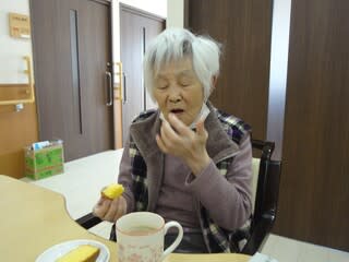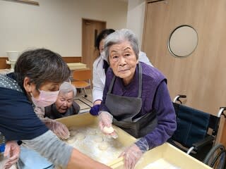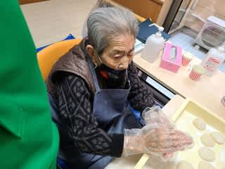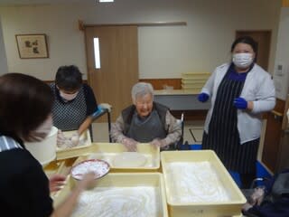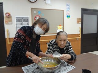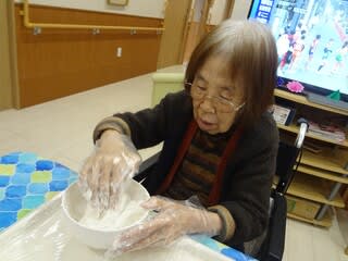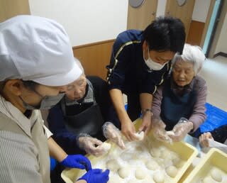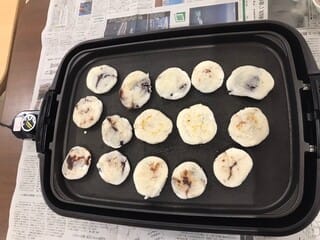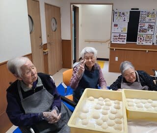 誕生日者がいないユニットでは手作りおやつで梅ヶ枝餅を作りましたよ