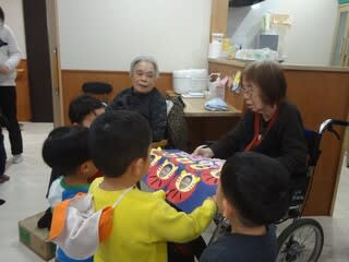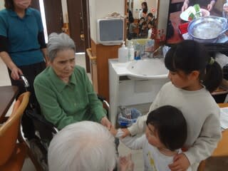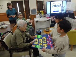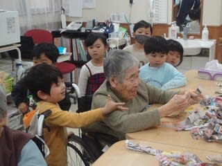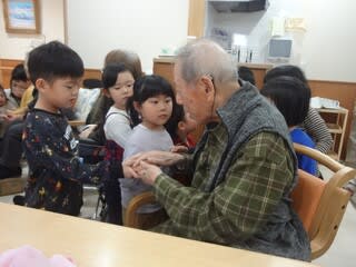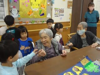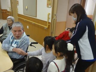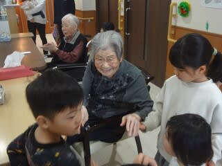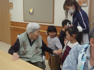 入居者様は、子ども達とふれあうと最高の笑顔になられます
