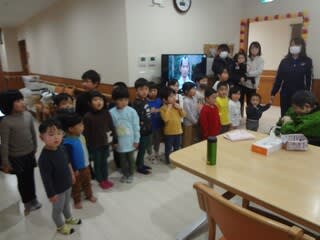 八幡保育園の園児たちが、年末の挨拶に来てくれました