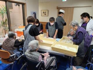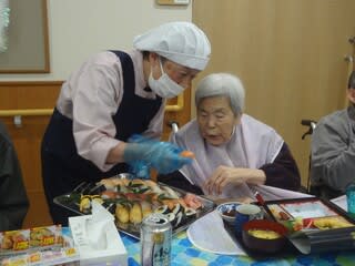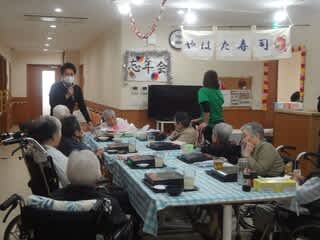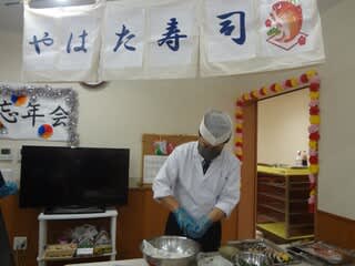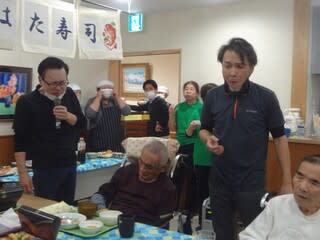 施設長の挨拶に始まり職員のお寿司のロシアンルーレットで