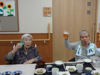 施設長から敬老の日のお言葉を頂き乾杯しました