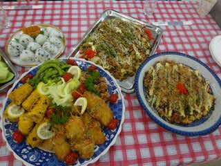 お好み焼き、焼きそば、串カツなど、好きな物を選んで、お腹一杯食べられていました