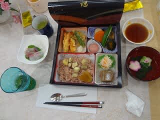 昼食は豪華な折詰めのお弁当で、美味しかったです