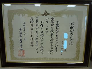雲仙市からは、花束などのお祝いの品の贈呈がありました。