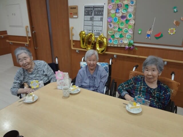 つるがおかユニットでは先日100歳を迎えられた方と三人で
