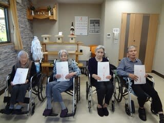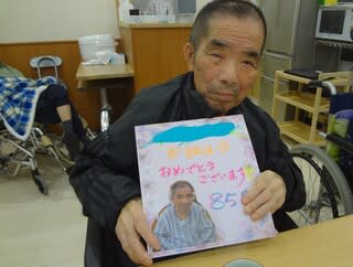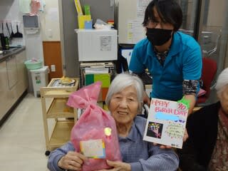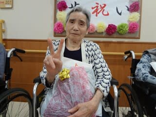 各担当職員の手作り色紙も個性があり、プレゼントと一緒に受け取られ皆さん大変喜ばれていました