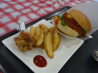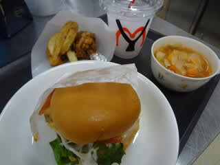 今日は、フライドポテトとチキン、ジュースも付けて、やはたの杜バーガセットの完成です